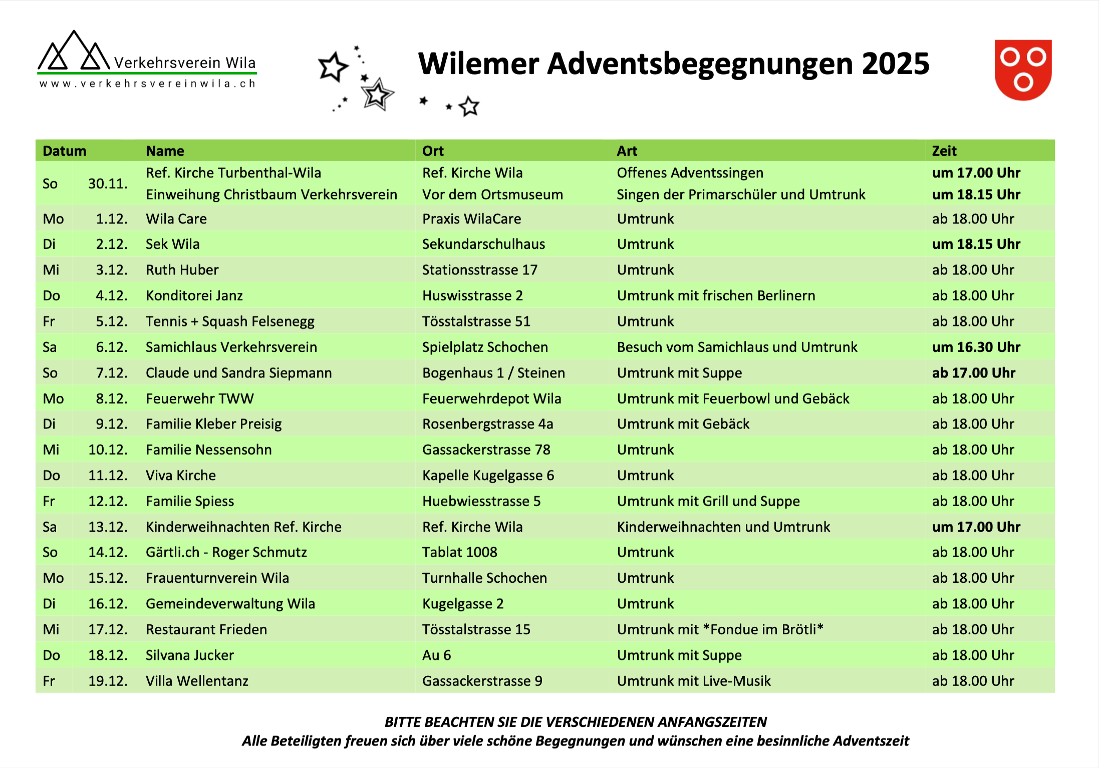 Eine Übersicht aller Adventsbegegnungen finden Sie auch in folgend verlinkter Pdf-Datei: Wilemer Adventsbegegnungen 2025